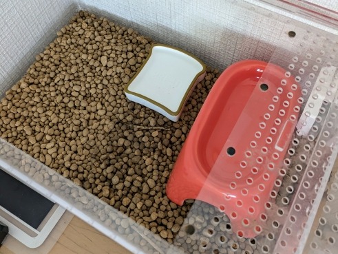 ヤシガラやソイルなどを使う場合も、汚れた部分だけを取り除けるようにしておくと管理しやすいでしょう。初めての飼育では「掃除しやすいかどうか」を優先して、床材選びをすると管理しやすくなります。